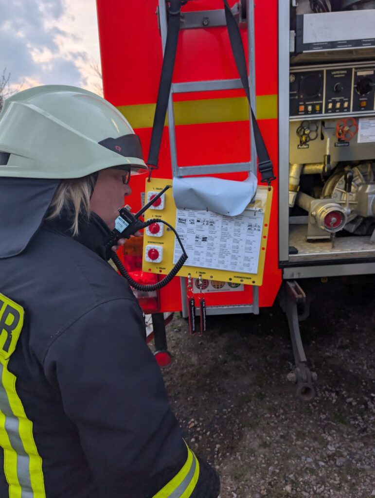 Kurze Zeit später wurde ‚Feuer aus‘ gemeldet und der betroffene Hallenteil gelüftet. Die Einsatzstelle wurde zurück gebaut und die Fahrt ins Feuerwehrgerätehaus angetreten. Dort wurde das Fahrzeug einsatzbereit gemacht und die Übung besprochen, bevor die Kameraden und Kameradinnen den Abend bei einer Wurst ausklingen ließen.